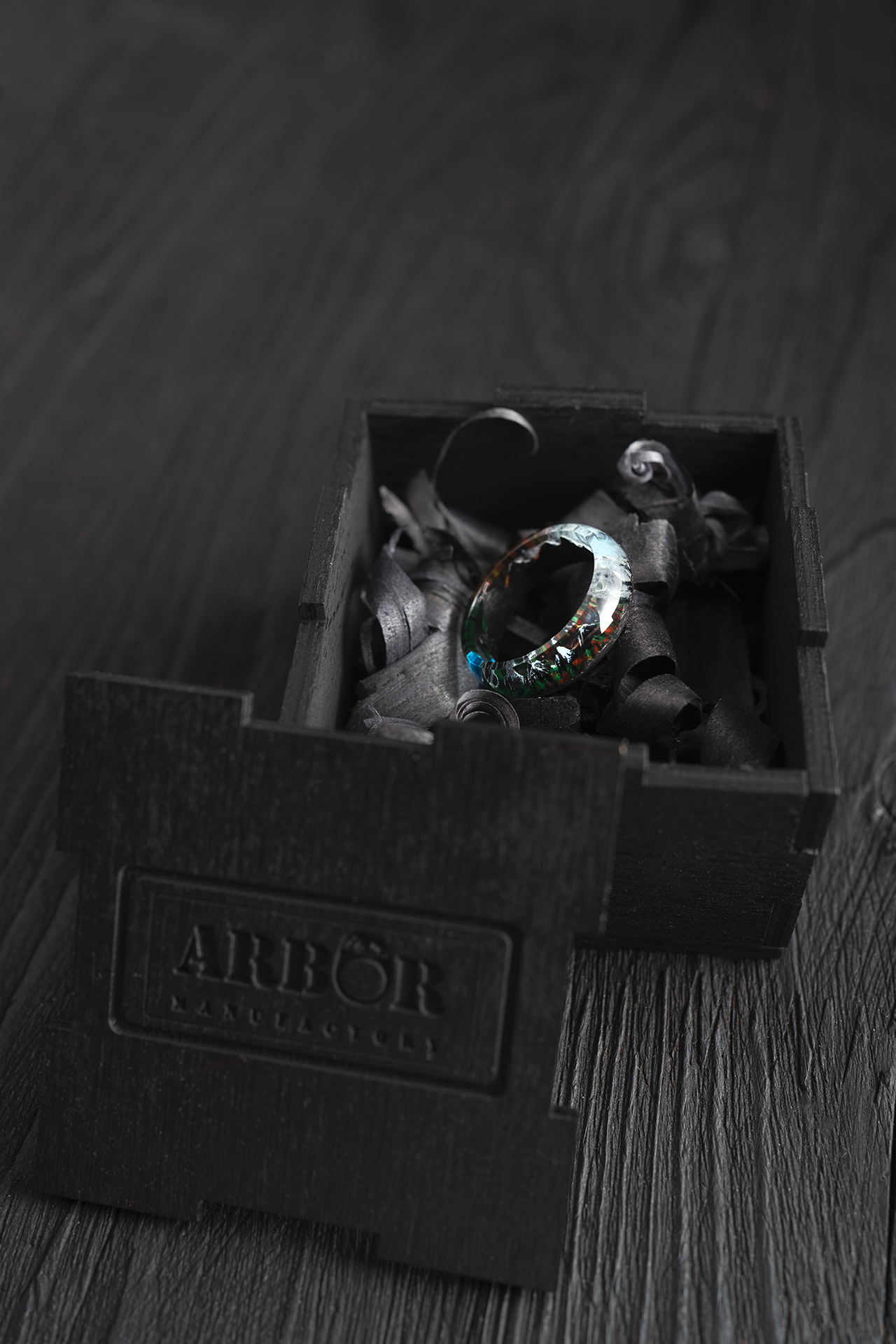 Все наши украшения упаковываются в черную деревянную коробочку с логотипом нашей мастерской.